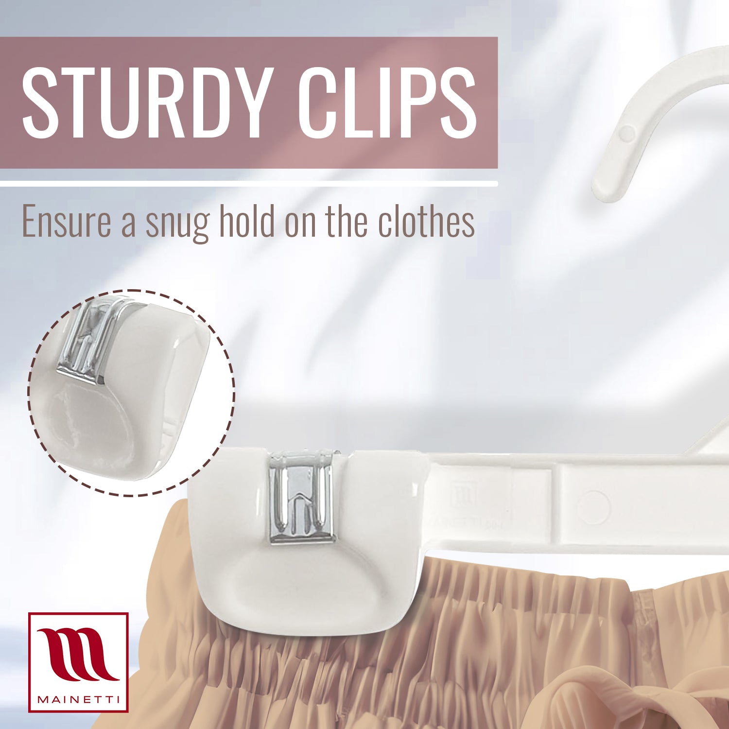 • Sturdy plastic clips to keep your garments secure