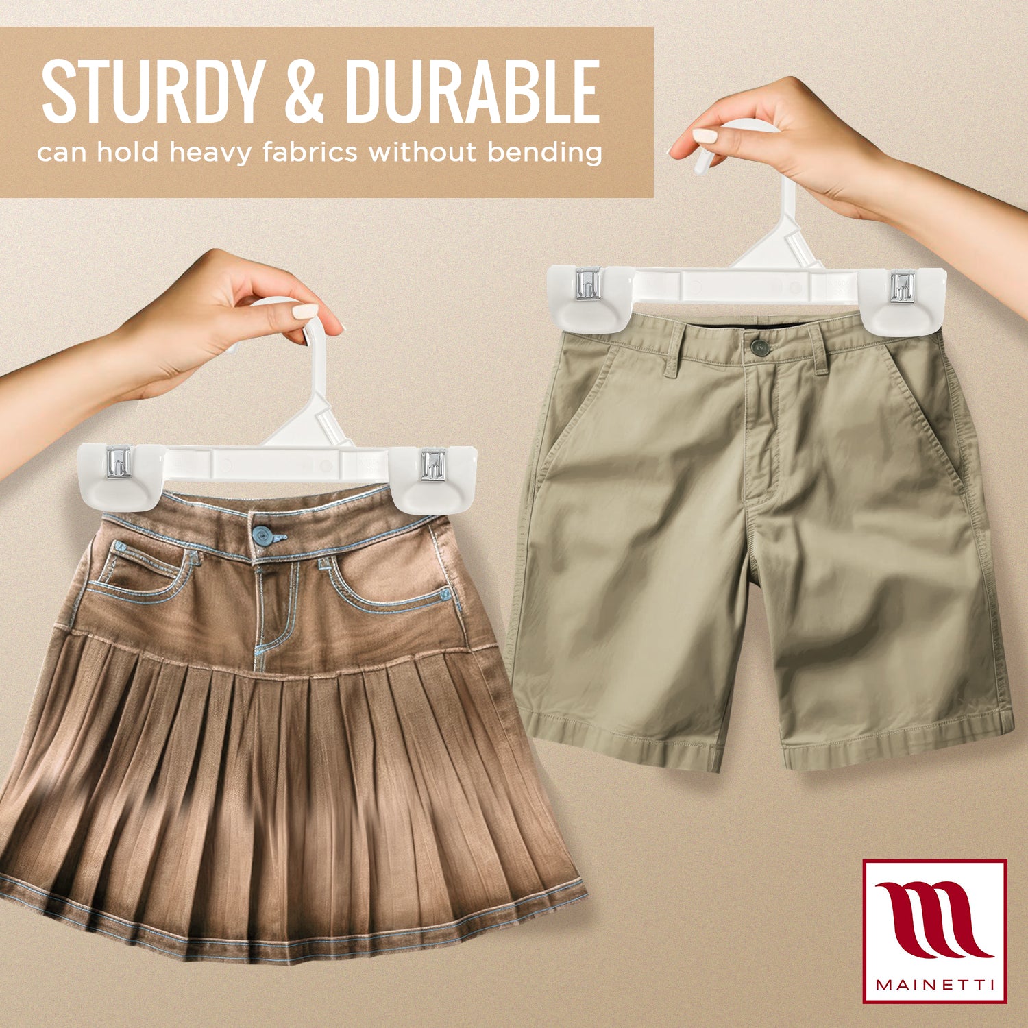 We are Mainetti. The most diverse full-service supplier of retail solutions. We are an innovator in garment hangers for famous names in retail and apparel. We pride ourselves in product sustainability and innovation across the global supply chain - from hangers to polybags, packaging labels, and RFID technology.
