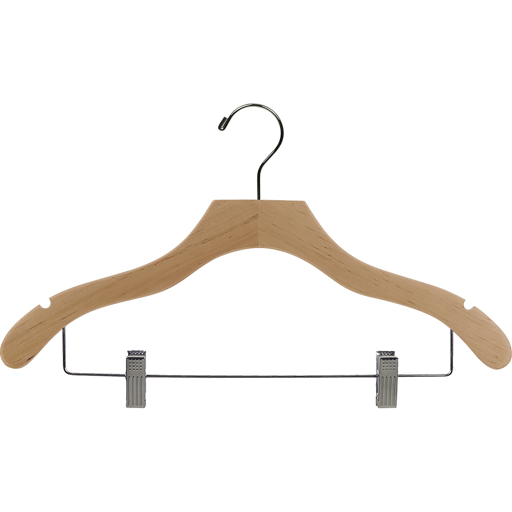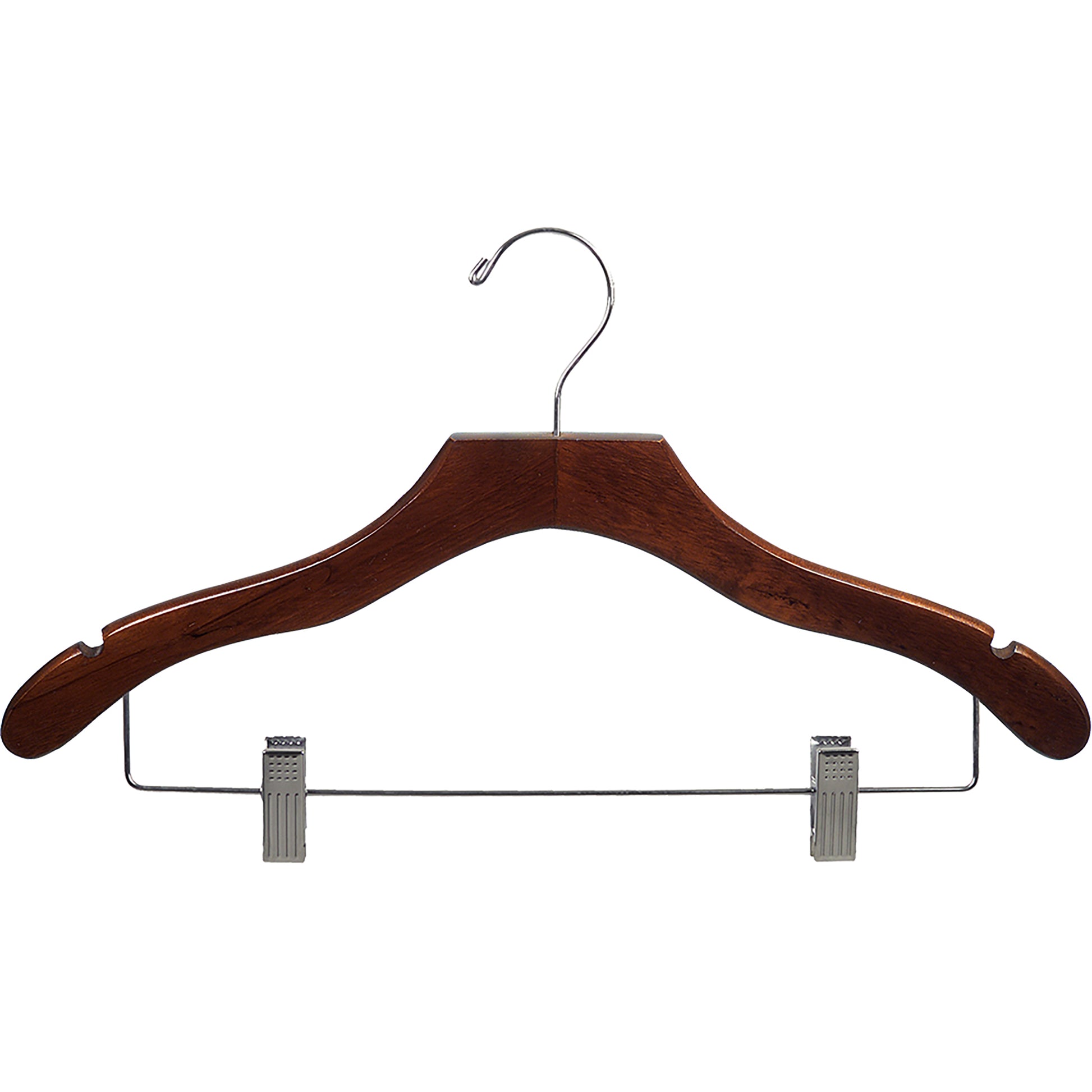 17" Wavy Wooden Suit Hanger with Metal Clips