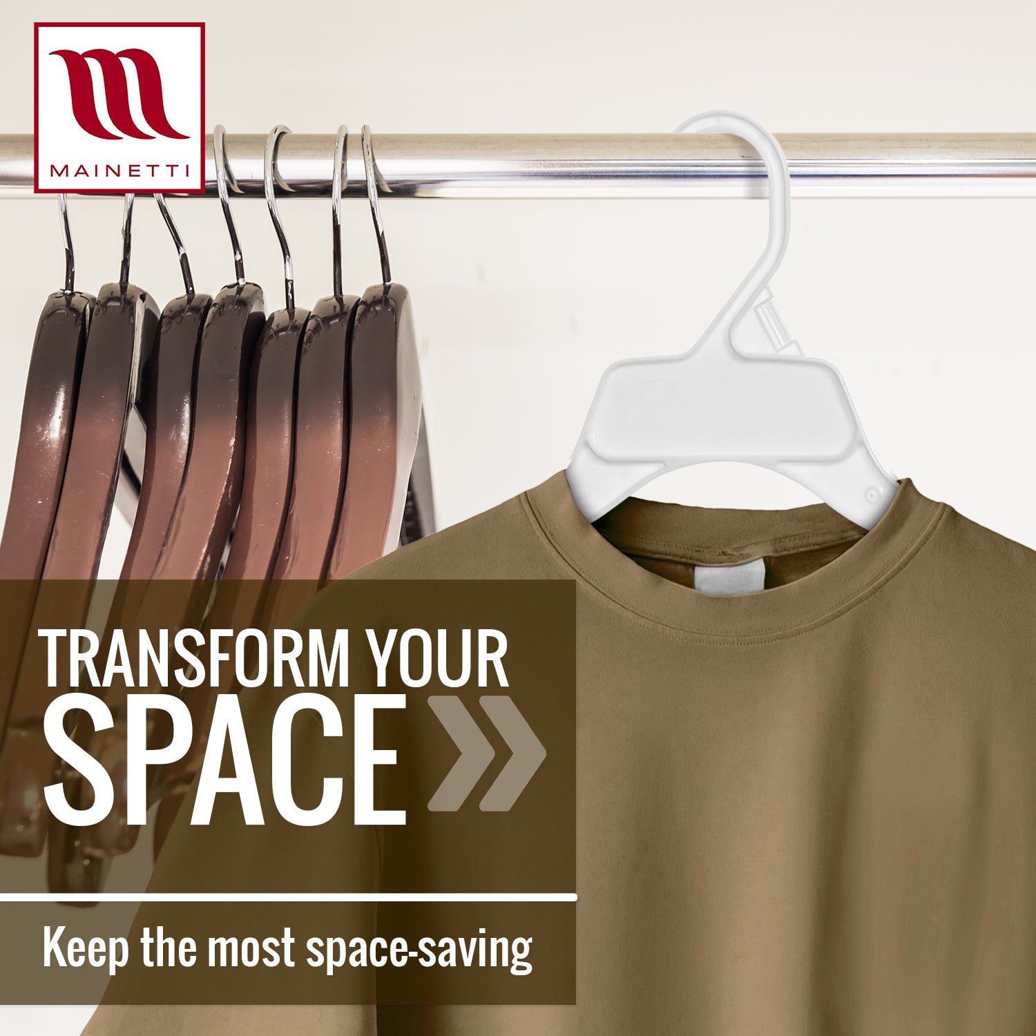 We are Mainetti. The most diverse full-service supplier of retail solutions. We are an innovator in garment hangers for famous names in retail and apparel. We pride ourselves in product sustainability and innovation across the global supply chain - from hangers to polybags, packaging labels, and RFID technology.
