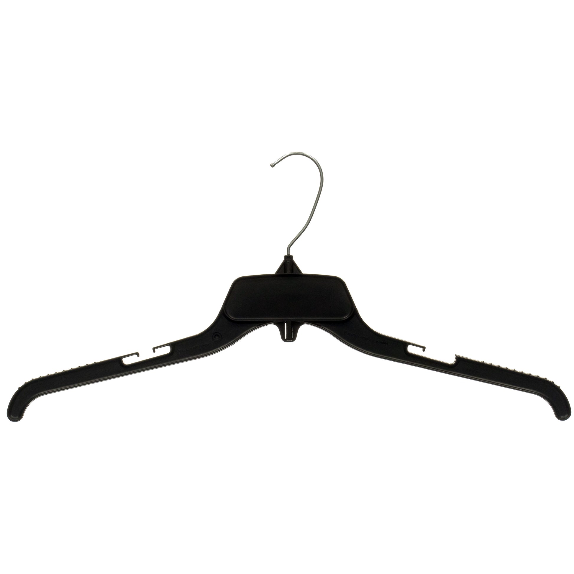 479 Recycle IBeam, 19" Black Plastic, Shirt Top Dress Hangers, with metal hook and notches for straps