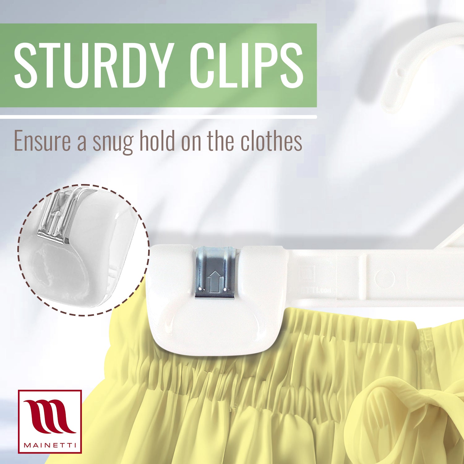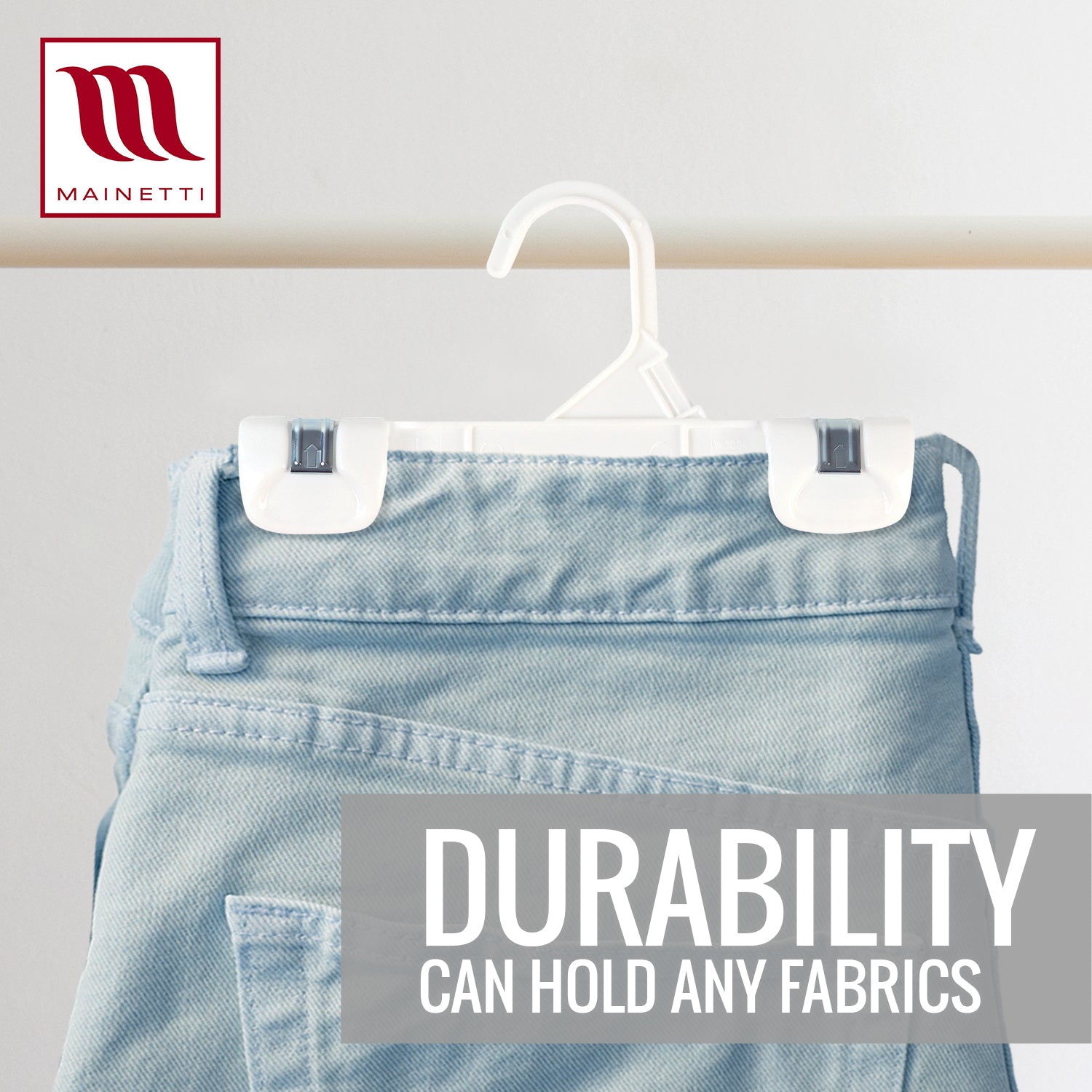 Mainetti 1004, 8" White all Plastic, Pant Skirt Slack Bottom Hangers, with sturdy plastic non-slip clips