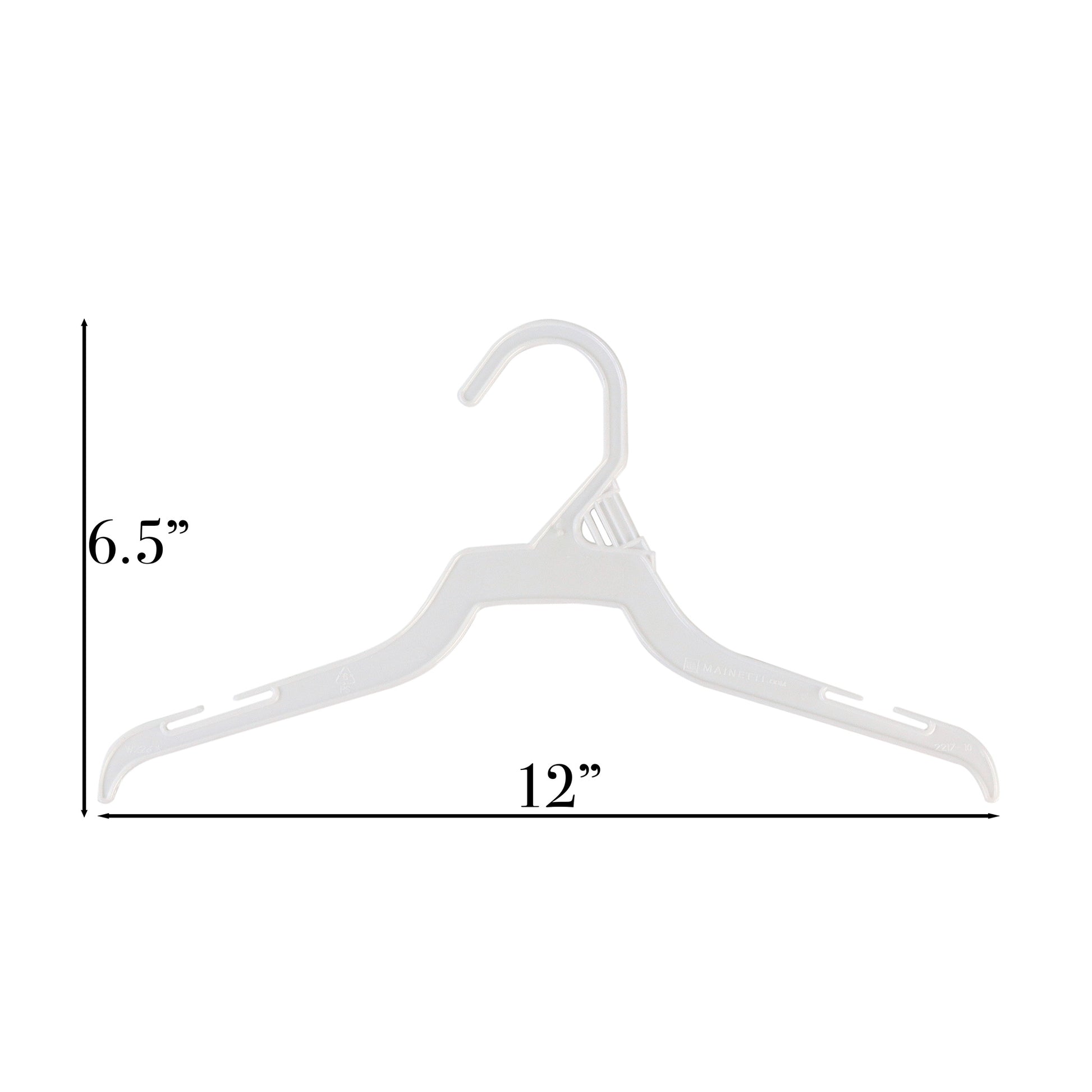 Mainetti 226, 12" White all Plastic, Shirt Top Dress Hangers, with notches for straps