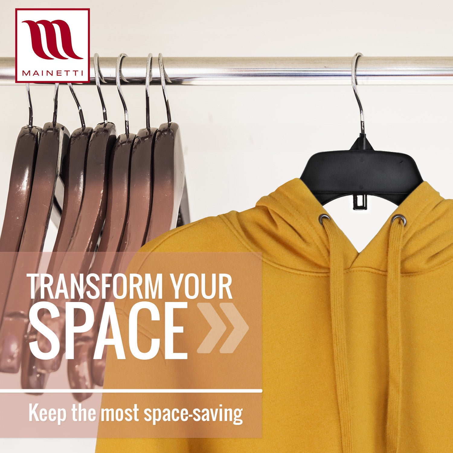 We are Mainetti. The most diverse full-service supplier of retail solutions. We are an innovator in garment hangers for famous names in retail and apparel. We pride ourselves in product sustainability and innovation across the global supply chain - from hangers to polybags, packaging labels, and RFID technology.