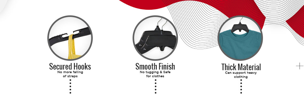 • The arm notches keep all of your strappy garments secure. With a slim profile, perfect for space-saving solutions.