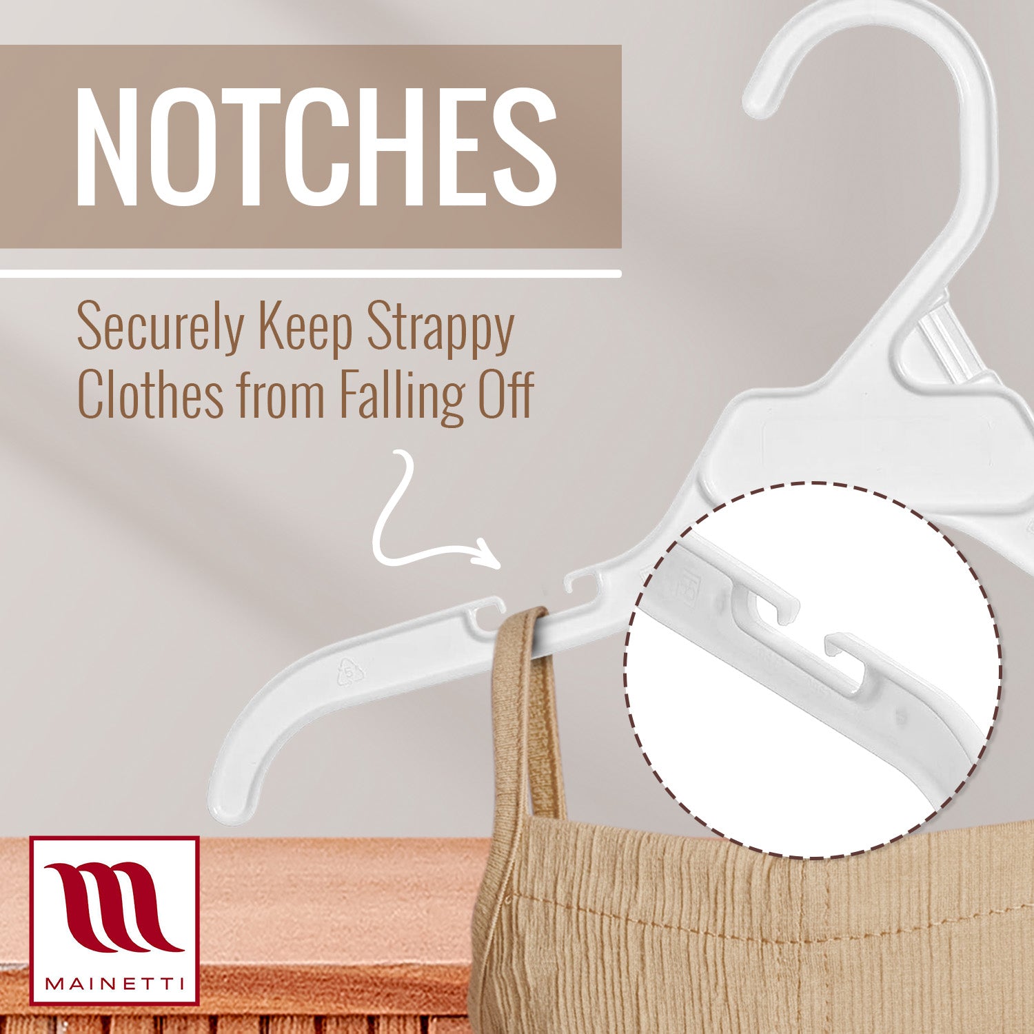 • The arm notches keep all of your strappy garments secure. With a slim profile, perfect for space-saving solutions.