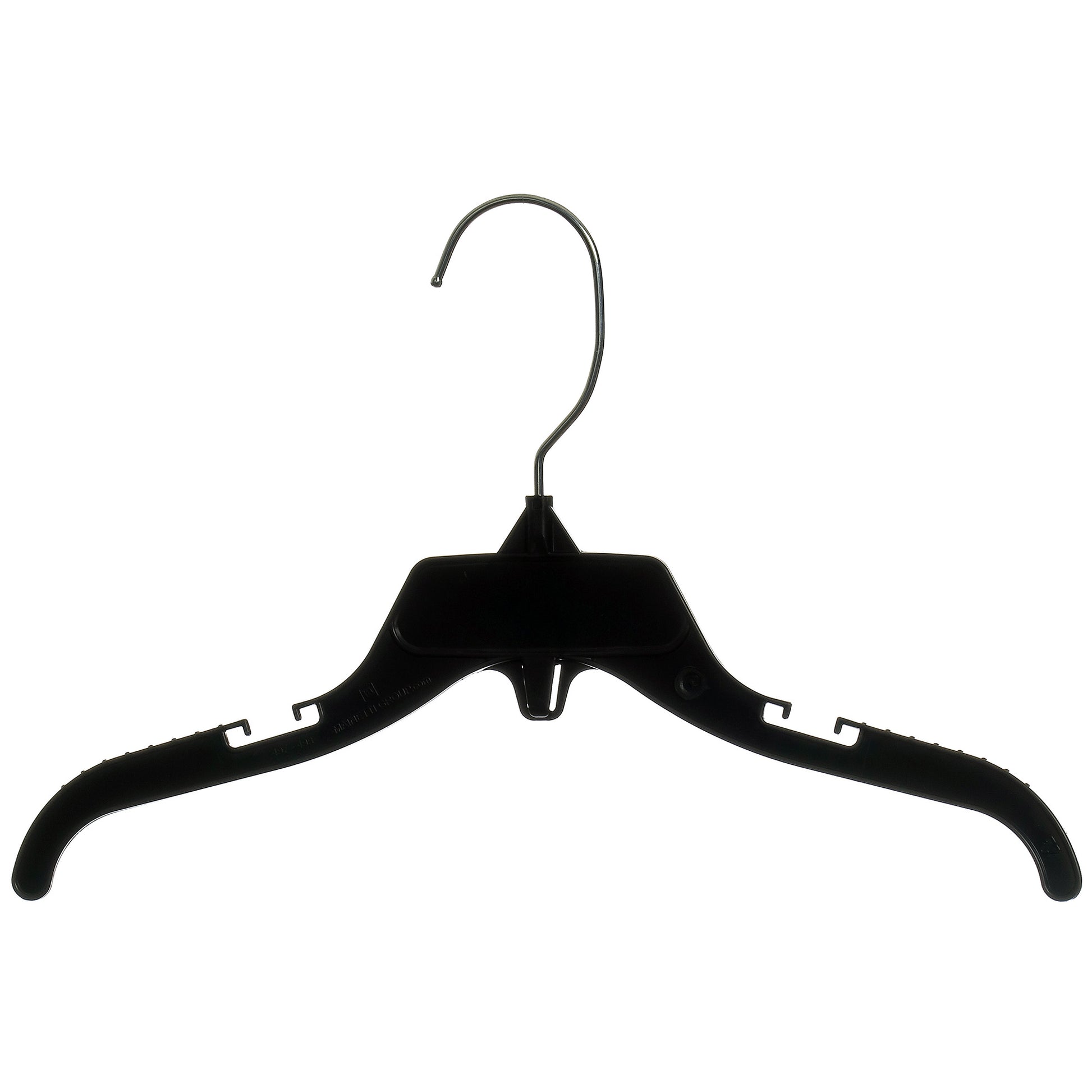 Mainetti 498, 12" Black Plastic, Shirt Top Dress Hangers, with turnable metal hook and notches for straps