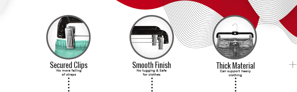 • The sturdy padded clips keep all of your garments secure, no slipping here. The width is adjustable by sliding the clips from left to right on the metal bar. Makes these hangers suitable for children's or adult sizes.