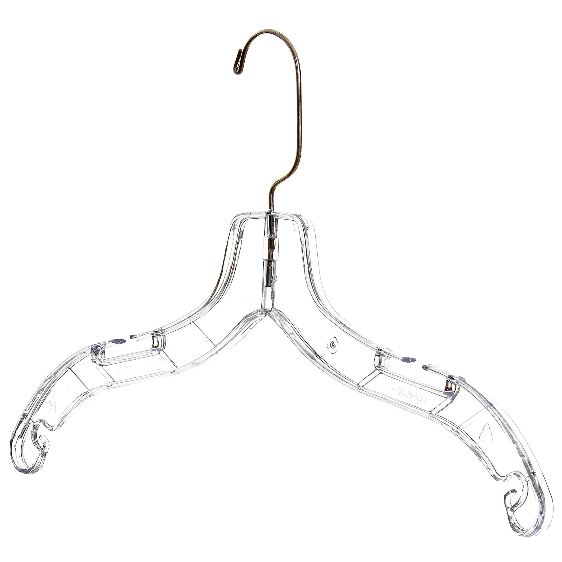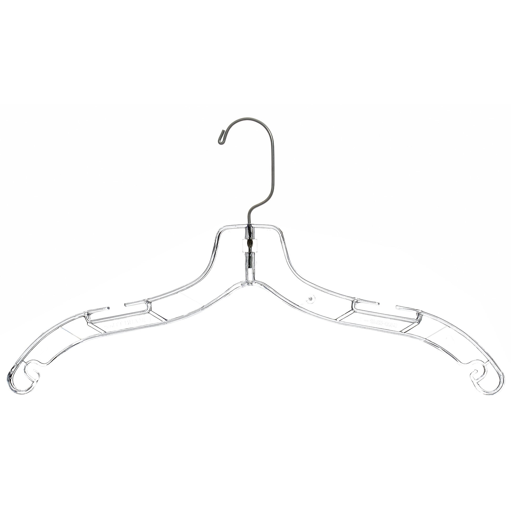 17" Clear Plastic Shirt-Top Dress Hangers, 360° Swivel Metal Hook, Notches For Straps (Mainetti 5400)