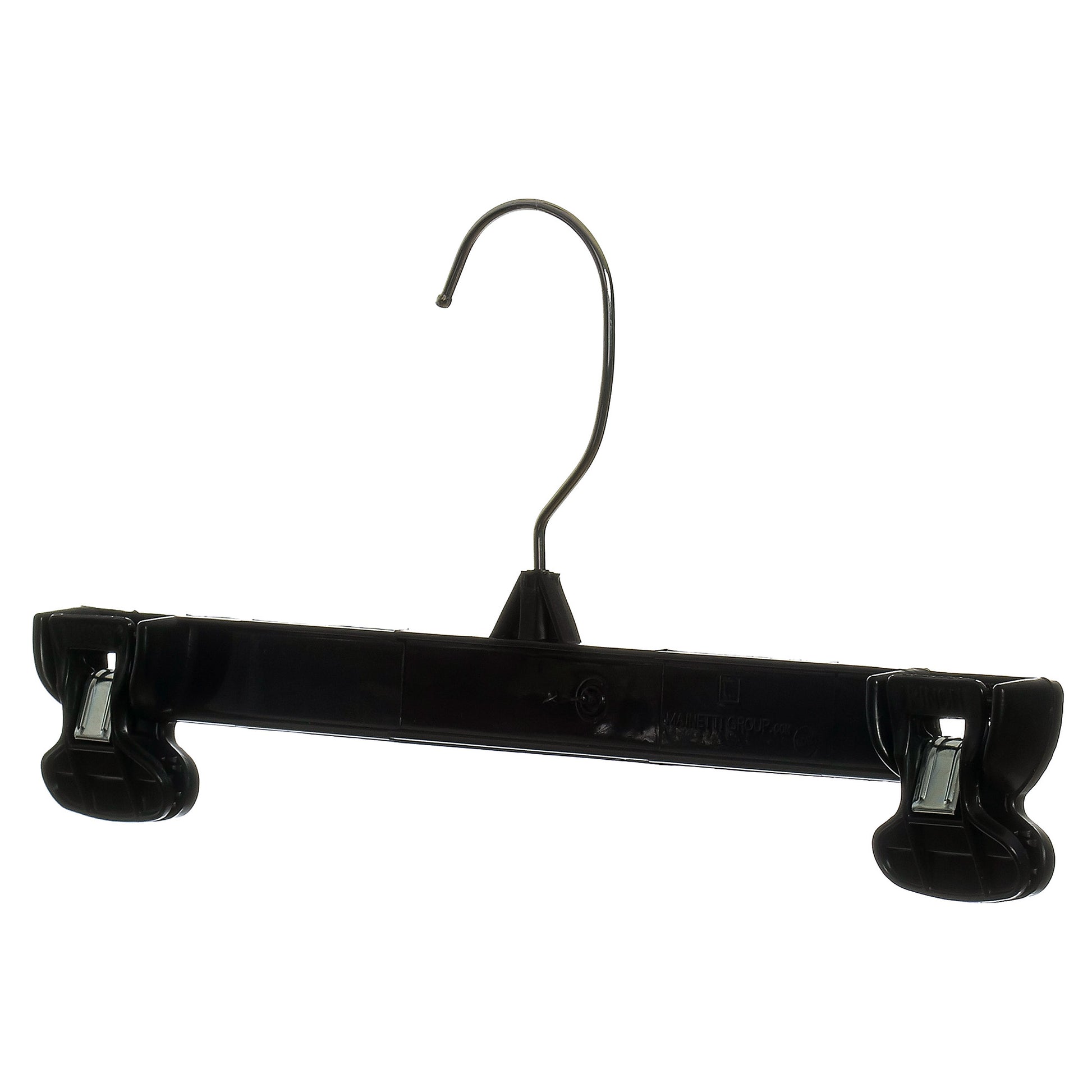 Mainetti 6012, 12" Black Plastic, Pant Skirt Slack Bottom Hangers, with turnable metal hook, sturdy plastic non-slip clips