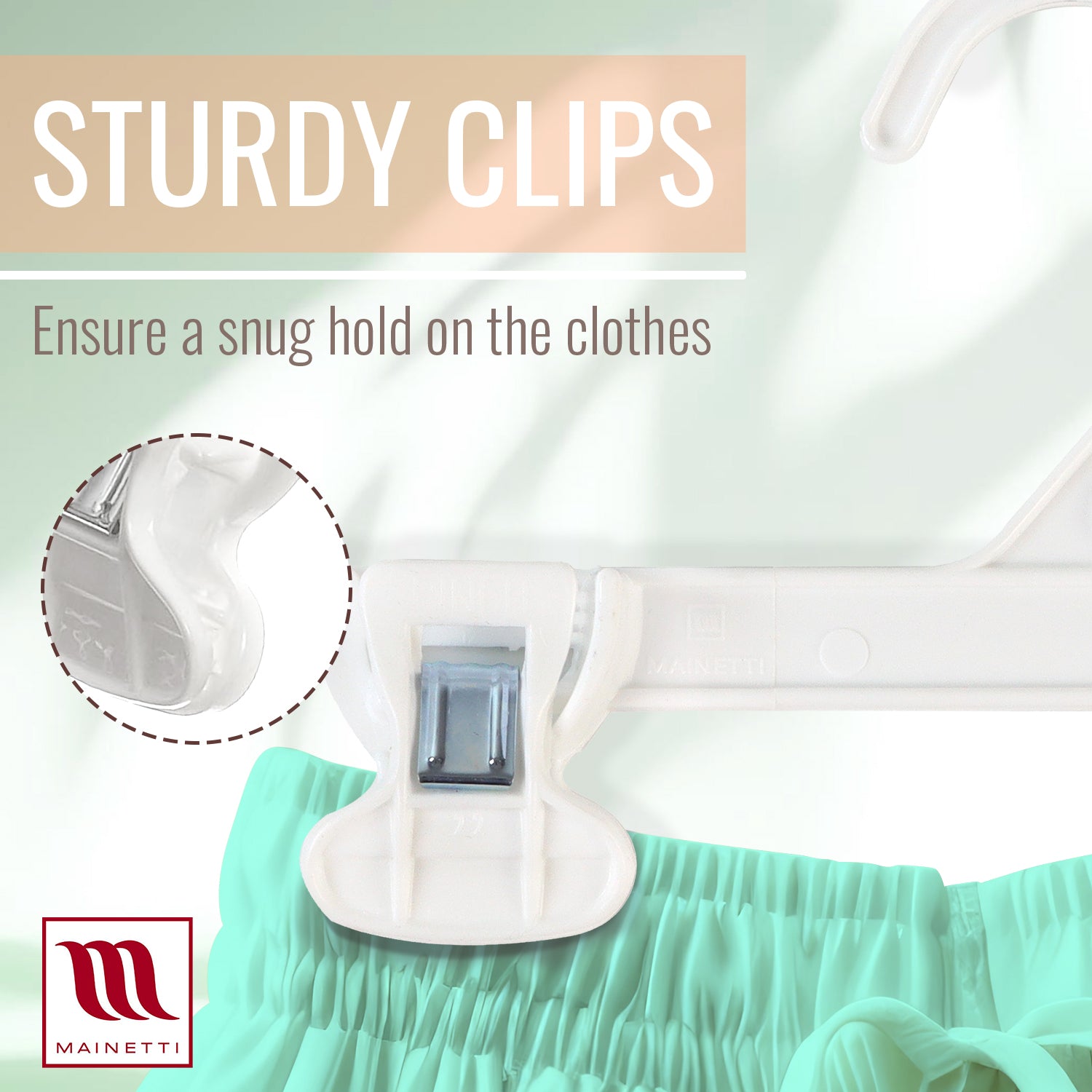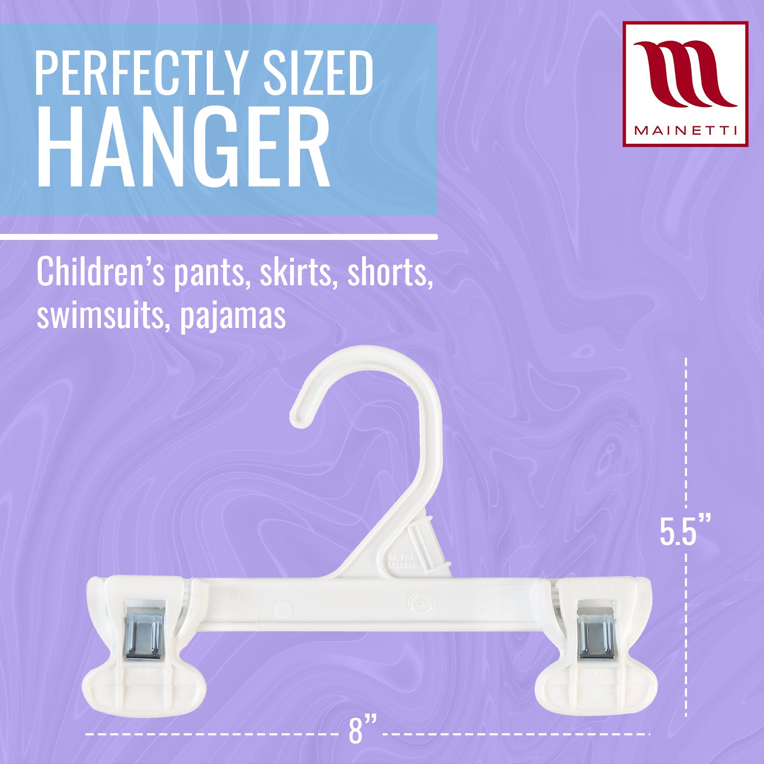 Mainetti 6108, 8" White all Plastic, Pant Skirt Slack Bottom Hangers, with sturdy plastic non-slip clips